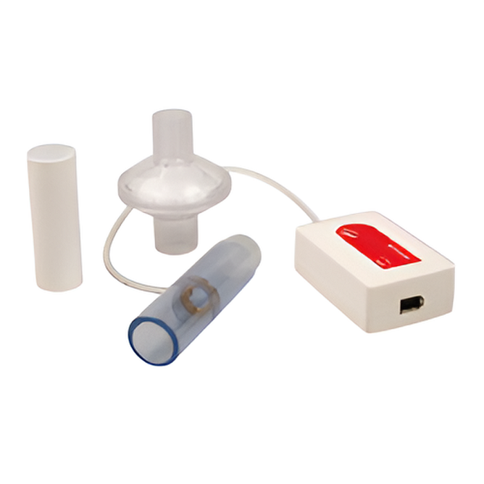 Датчик для спирометрии BT82i измеряет объем воздуха во время дыхания человека. Датчикт состоит из трубки, через которую пациент вдыхает и выдыхает воздух, а также датчика разности давлений.