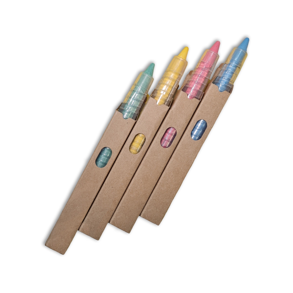 Набор мелков в футляре 4 цвета - голубой, зеленый, красный, желтый . Мел в футляре (ручка) удобно держать, пишет мягко и не царапает доску. Мел изготавливается на основе высококачественных пигментов.