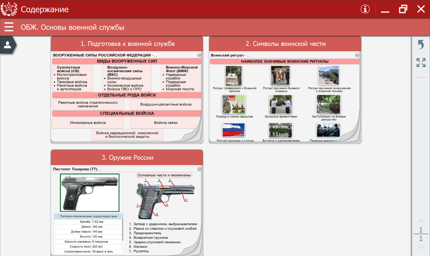 Отличительной особенностью интерактивного учебного пособия «ОБЖ. Основы военной службы» является создание собственной тематической последовательности курса с возможностью включить дополнительные медиаобъекты в структуру самого пособия.