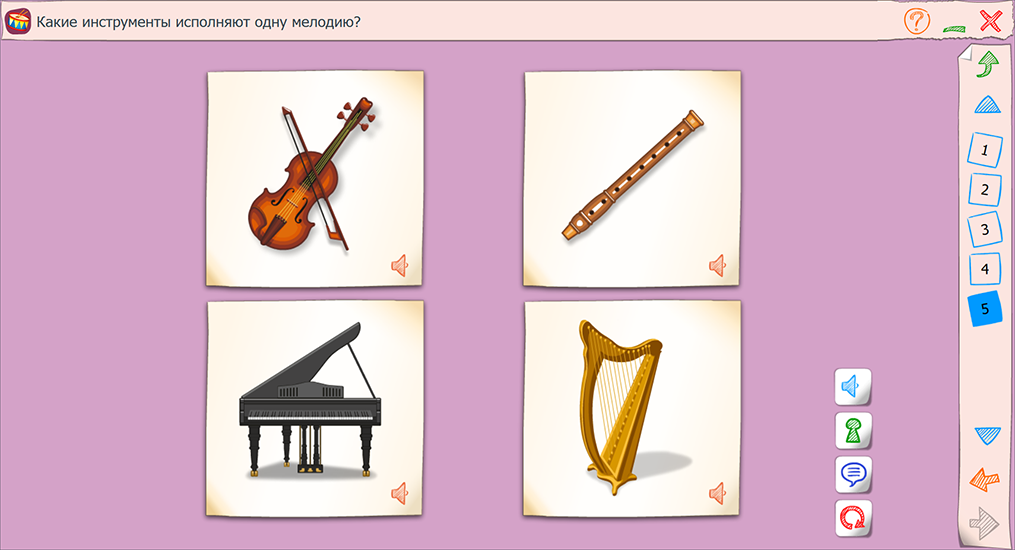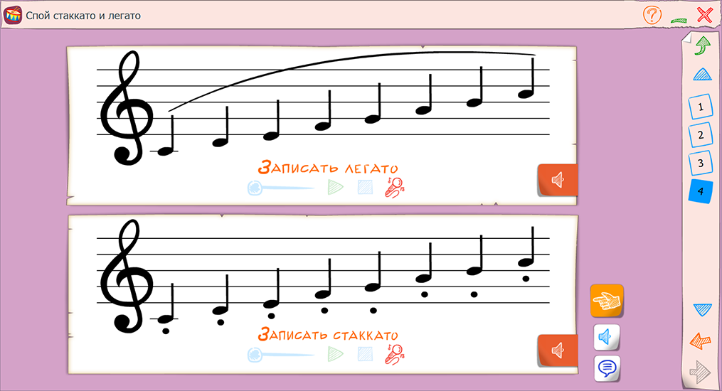 Удобный интерфейс пособия «Ритмика. Музыкальные игры и упражнения» позволяет ребёнку заниматься с минимальной помощью логопеда, родителя или воспитателя.