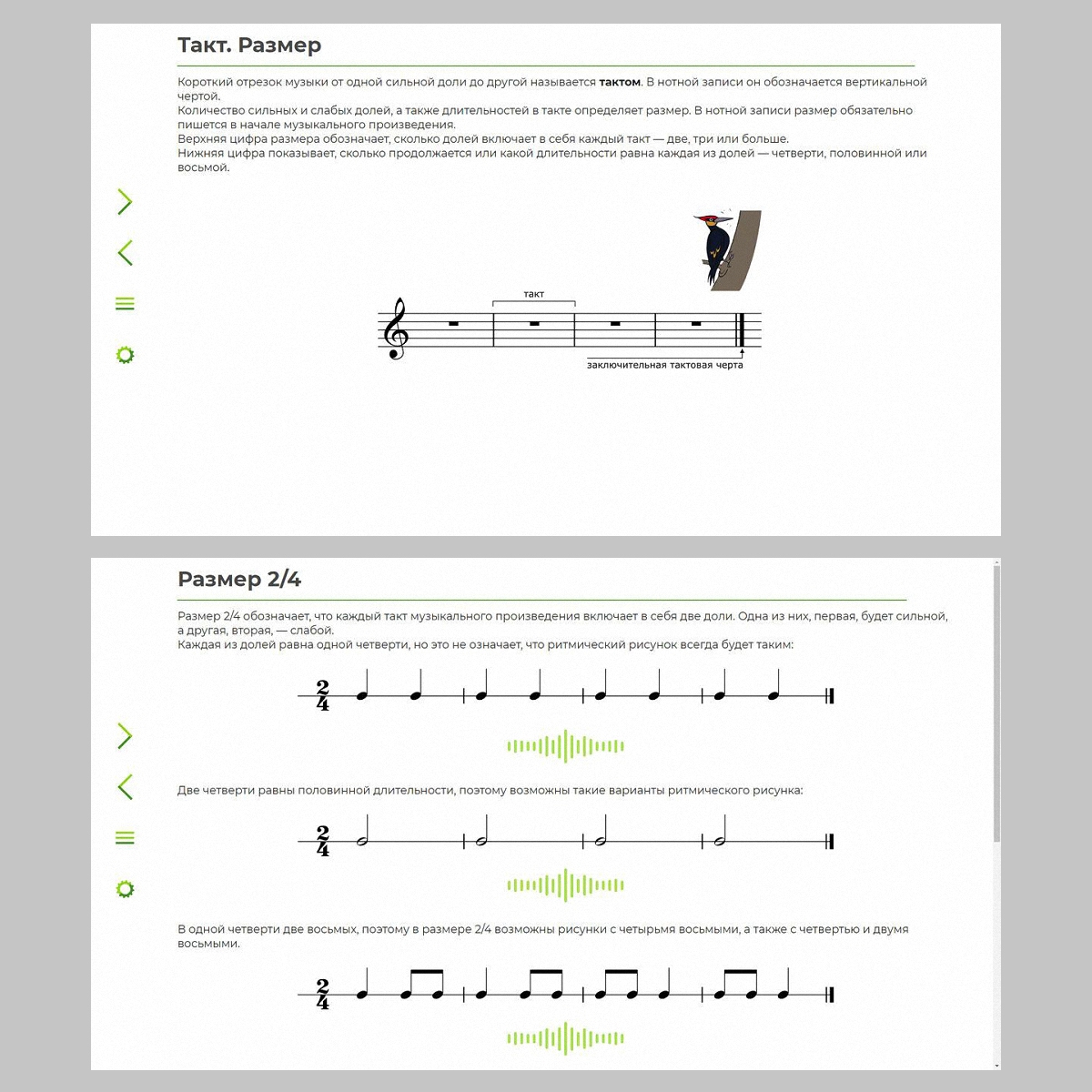 - обучающий материал (тексты, ноты, иллюстрации, аудио- и видеофрагменты);