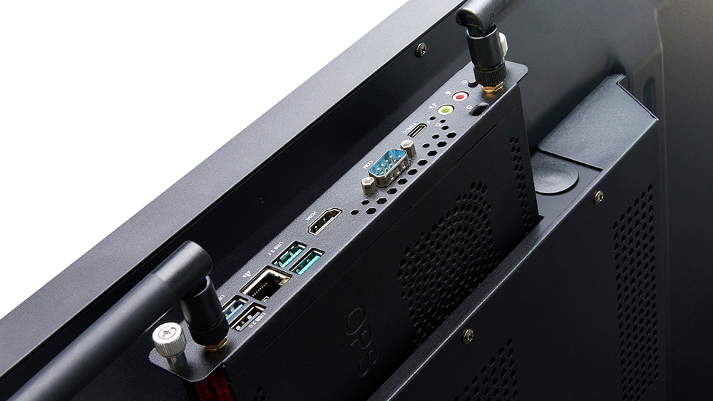 OPS – это встраиваемый модульный компьютер. Подключается через стандартный разъём в боковой части корпуса. С OPS интерактивная панель становится полноценным компьютером на Windows 10.