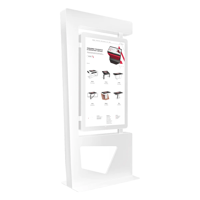Сенсорный киоск Line 43" — это оригинальное и функциональное решение для автоматизации процессов и привлечения внимания посетителей. Минималистичный корпус с «парящим» сенсорным экраном и геометрическим основанием делает эту модель настоящим акцентом в любом интерьере.