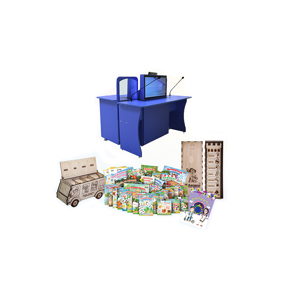 Интерактивный мультимедийный логопедический комплекс-стол Logo Prof» Plus позволяет логопедам и педагогам дошкольных, младших школьных и различных внешкольных учреждений, использовать современное готовое решение для коррекционной работы. В дополнение к интерактивному комплексу прилагается дидактический развивающий набор «Кисельковое царство», в который входят развивающие тренажеры и раскраска, а также набор из 28 комплектов карточек и 4 комплектов открыток.