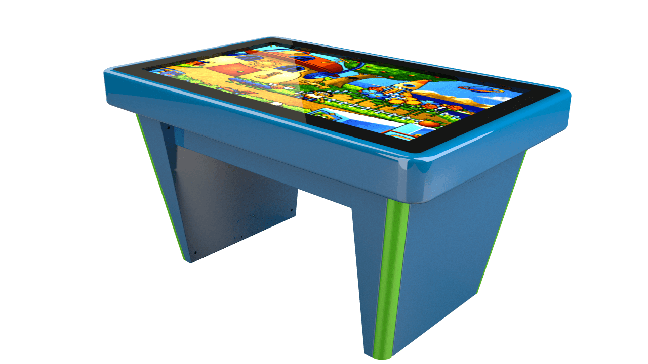 Интерактивный стол Kids имеет современный дизайн, яркое цветовое оформление и мощную компьютерную начинку.