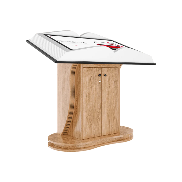 Идеальное сочетание оригинального дизайна и самых последних инновационных технологий. Данная модель оформлена в виде раскрытой книги, в которую можно загрузить совершенно любой контент: от видео, до текстовых материалов, которые можно оформить в формате перелистывающихся страниц. Book Pro 55" прекрасно впишется в музей, а также в любое выставочное пространство и, точно привлечет к себе внимание всех посетителей.