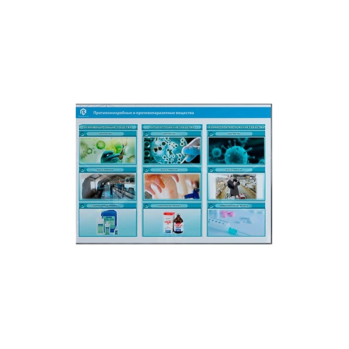 Светодинамический стенд-планшет предназначен для получения знаний о противомикробных и противопаразитарных веществах.