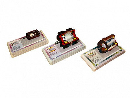 Комплект учебно-лабораторного оборудования позволяет изучать электрические машины переменного и постоянного тока. Оборудование представляет собой набор электрических машин постоянного тока в разрезанном виде.