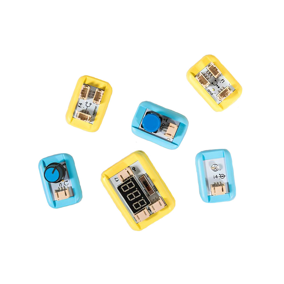 Идеальный инструмент для знакомства со схемотехникой на начальном уровне, проектирования простых электронных устройств, реализации технологий STEAM. Без программирования, без пайки. Набор имеет более 40 различных модулей, включая датчики, исполнительные механизмы, логические вентили, функциональные и силовые блоки и многое другое.