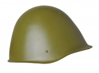 Против осколочный Шлем-Каска – защитный головной убор из стали с ремнём для фиксации на подбородке и бортиками отогнутыми наружу. Использовалась амией СССР и странами Варшавского договора. Начало выпуска 1968 год. Вес составляет 1300 грамм, с подшитым дерматиновым подшлемником 1500 грамм. Защищает от прямых попаданий осколков, ударов холодным оружием и пуль малой пробивной силы.