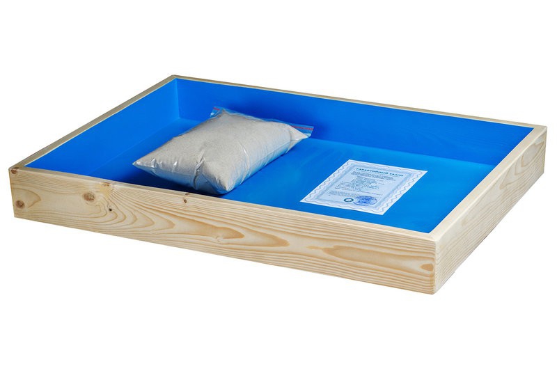 1)   Песочница с голубым дном и бортами (70*50*10см) - идеальный размер для юнгианской песочной терапии.