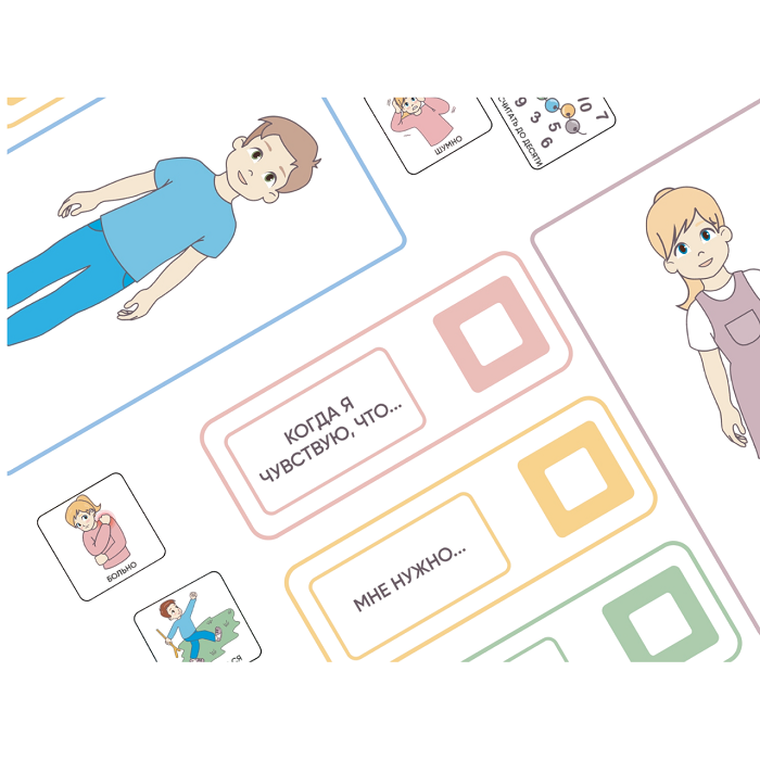 Визуальные опоры для организации и обучения ребенка самопомощи в типичных трудных ситуациях: излишний шум, физический дискомфорт, утомление и другие. Вариант для мальчика и для девочки.