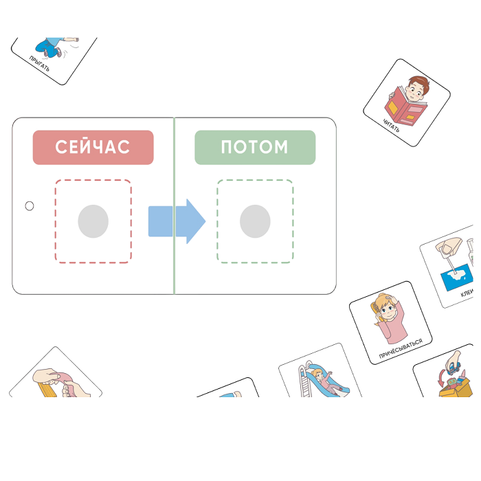 Главная Каталог Кабинет логопеда Альтернативная коммуникация Карточки ПЭКС: визуализация «Сейчас — потом»