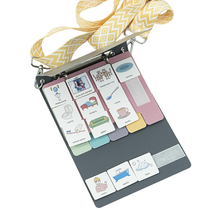 Инструмент для альтернативной/дополнительной коммуникации у детей, имеющих проблемы с речью (в том числе, РАС). Это пластиковая папка на кольцах, куда вкладываются жёсткие листы с рядами ленты-липучки велкро. На ленту приклеиваются карточки PECS/ПЕКС, служащие средством обмена информации между неговорящим ребёнком и взрослым.