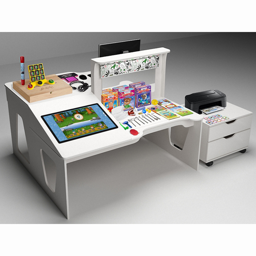 Профессиональный стол логопеда "Лого-Про Макс+" оснащен компьютером, мультисенсорной панелью, а также специальным набором для детей аутистов предназначен не только для эффективных занятий с детьми по программе коррекции речи, но и специализированных занятий для детей с синдромом ОПА (ДЦП).