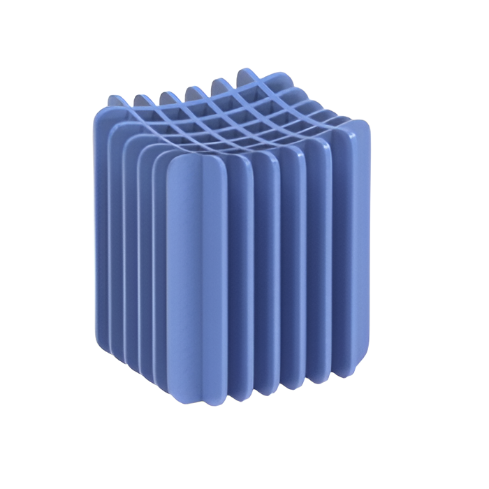 Пуф изготовлен из искусственного войлока, с анатомическим углублением для комфортного сидения. Его размеры составляют 400x401x473 мм, пуф состоит из 12 модулей, соединенных между собой соединением «шип-паз», что обеспечивает прочность и устойчивость конструкции. Изготовлен из 100% полиэстера, что делает его устойчивым к механическим повреждениям и безопасным для здоровья человека.