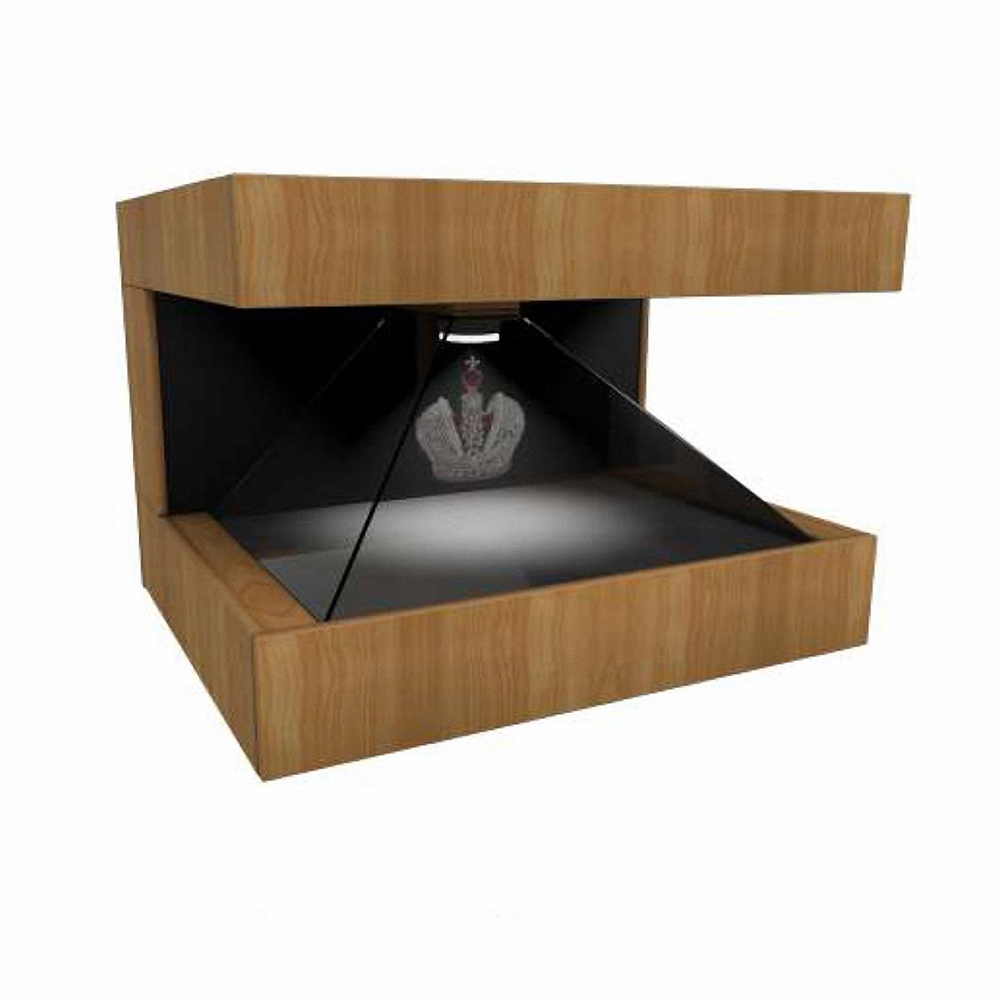 Преимущество настольной модели в том, что она выделяется малыми габаритами и устанавливается в местах с ограниченным пространством. При этом проецируемый контент просматривается с 3-х сторон.