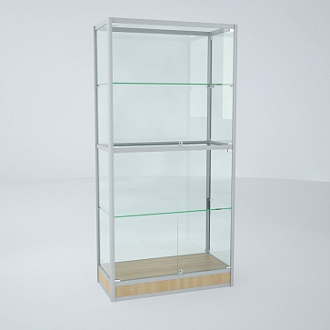 В комплект витрины входит три стеклянные полки, задняя стенка стекло, замки на дверках. Возможно, заменить заднюю стенку на двп или зеркало. Верхняя часть (крыша) стекло без подсветки.