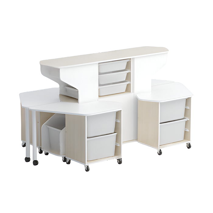 Главная Каталог Подготовительная группа и детский сад Инженерный класс в детском саду Мебель для инженерного класса в детском саду Модуль-стеллаж "Робот-Робик 002" (дуб молочный/белый)