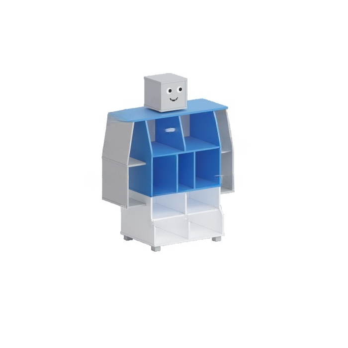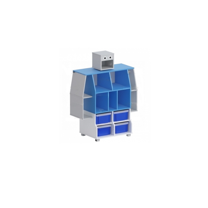 Главная Каталог Подготовительная группа и детский сад Инженерный класс в детском саду Мебель для инженерного класса в детском саду Стеллаж «Робот» (синий/белый/серый)