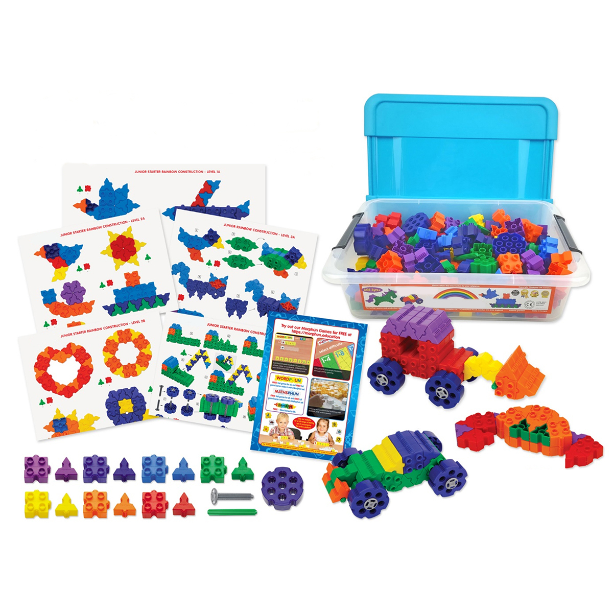 Развивающий конструктор «Радуга» – знакомит ребенка с основными геометрическими фигурами и вариантами сборки моделек животных и техники. В комплекте 185 деталей всех цветов радуги. Уникальный способ соединения деталей делает конструкции достаточно гибкими и поворотливыми, и не представляет никаких ограничений для фантазии ребенка. Конструкторы очень нравятся детям, собранные модели они могут многократно разбирать и собирать новые из тех же самых деталей. Разнообразие элементов по цвету, конфигурации, способу соединения способствует развитию творческих способностей, стремлению к самостоятельному использованию конструктора, ощущению ребёнком собственной компетентности.