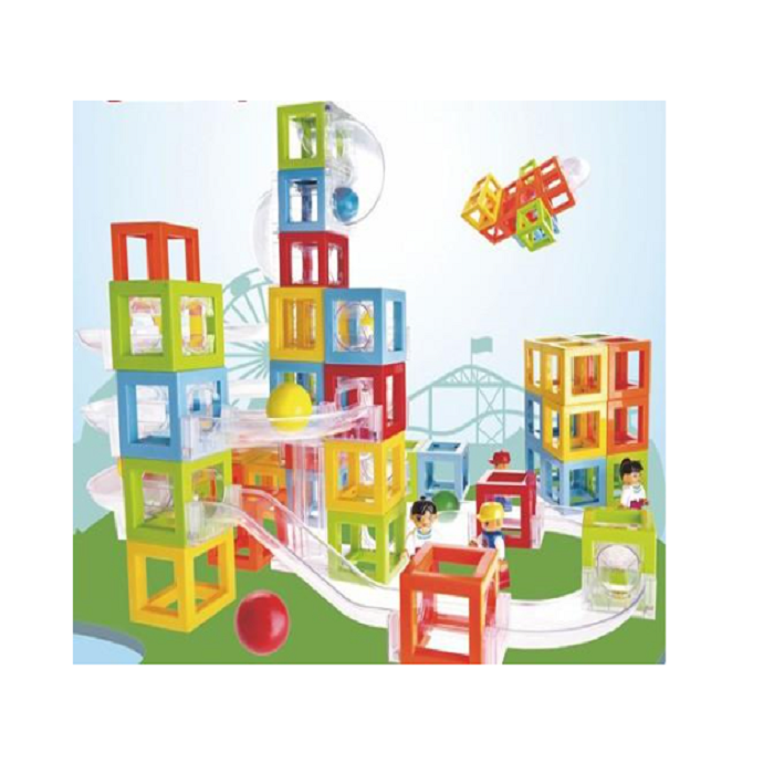 Необычный конструктор воплощает в себе мечту любого мальчишки! Здесь есть возможность одновременно проложить извилистую дорогу для шарика-путешественника, возвести высокие сказочные башни и просто дать свободу творчеству, проявив свою безграничную фантазию! Основная деталь – объёмный кубик с открытыми стенками, в которой находится дорожная лунка – часть трассы, которая пролегает от башни к башне! Тем самым  усложняется задача для юного строителя – построить красивый стройный замок, через который пролегает длинная тропинка для импровизированного колобка в виде шарика! А ещё полученная конструкция напоминает игрушечный аквапарк! Вот бы покататься на таких водных горках! Невероятное приключение для детишек, которые любят развивающие игры! Набор полезен для развития конструктивного и творческого мышления, сенсорного восприятия, расширения кругозора.
