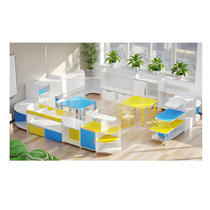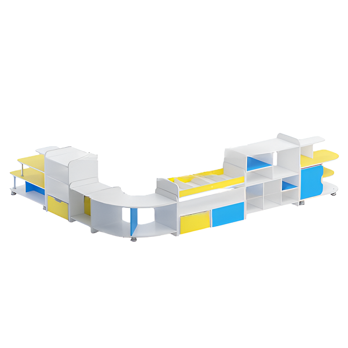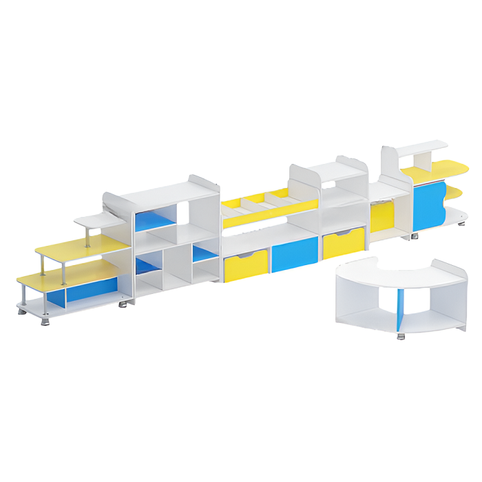 Набор стеллажей для пособий (белый/желтый/синий)