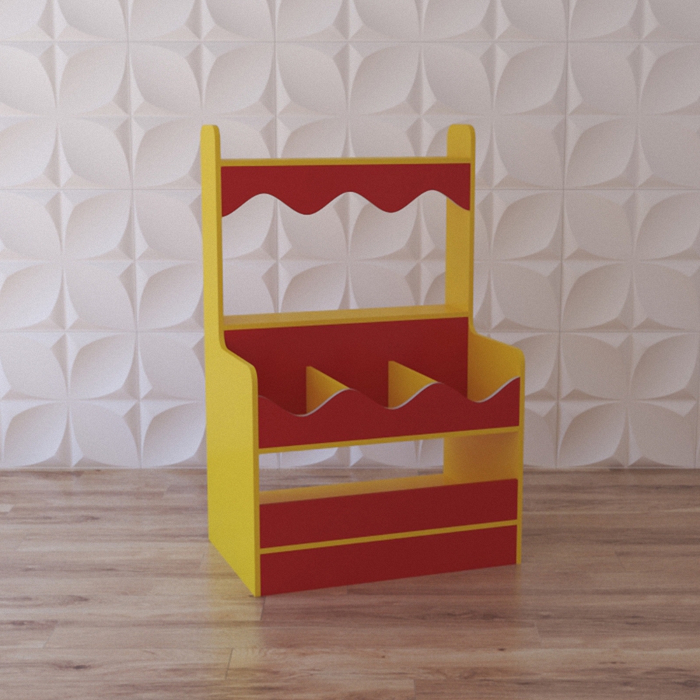 Игровое тематическое оборудование для сюжетно-ролевых игр “Весёлые покупки” предназначено для детей от 3 лет. Тематически востребованное оформление делает его незаменимым для весёлых сюжетных детских игр. Игровой модуль “Весёлые покупки” представляет из себя уменьшенную копию магазинного стелажа-прилавка с полочками, окрашен в красно-жёлтые тона.