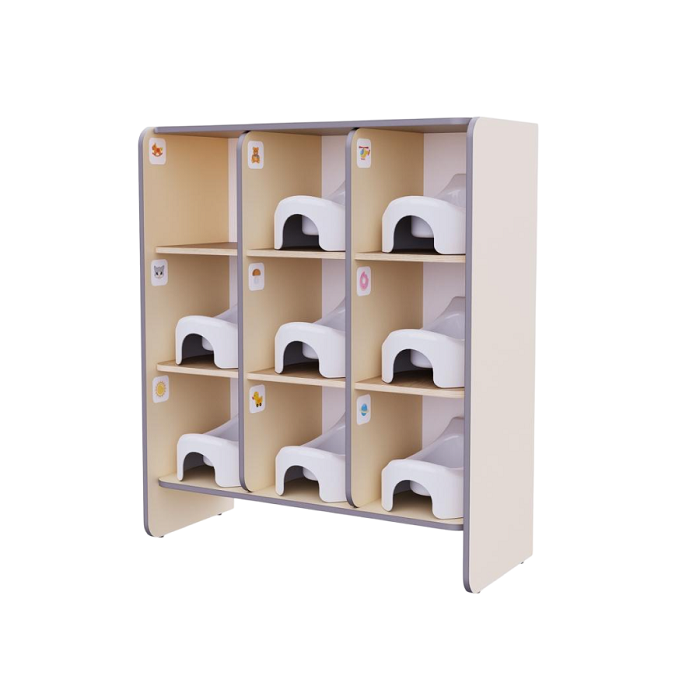 Это функциональное решение для организации пространства в группах детского сада. Стеллаж поможет поддерживать порядок и чистоту.