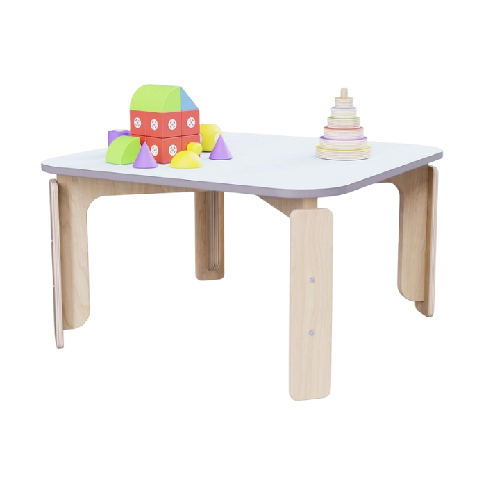 Квадратный растущий стол из коллекции «НЕГА» с плавными линиями обеспечивает безопасное перемещение детей для игровых зон малышей.