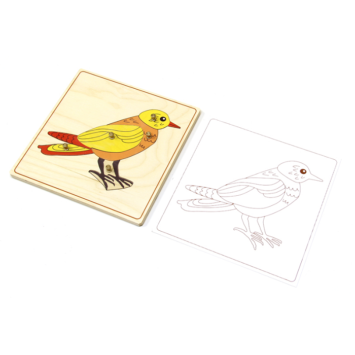 Материал предназначен для изучения строения птицы. Яркий наглядный материал побуждает ребенка к многократному составлению целого из частей, а также ребенок выкладывает на контур части птицы, сопоставляет их, проговаривая названия. Упражнение способствует развитию речи, формированию целостного восприятия формы, способствует увеличению словарного запаса.