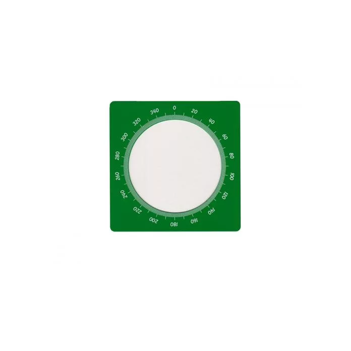 Металлический зелёный квадрат с вырезанным внутри кругом и измерительной линейкой нанесенной по кругу, с помощью которой измеряют угол.