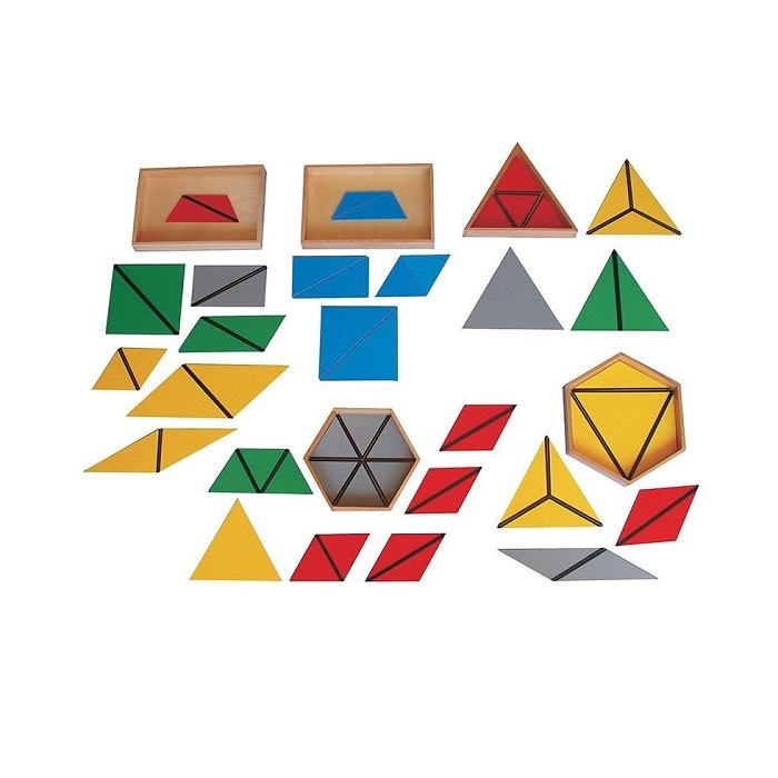 Малый шестиугольный ящик – ребенок узнает, что правильный шестиугольник можно построить из двух трапеций, шести равносторонних треугольников, шестки равнобедренных тупоугольных треугольников или из трех ромбов.