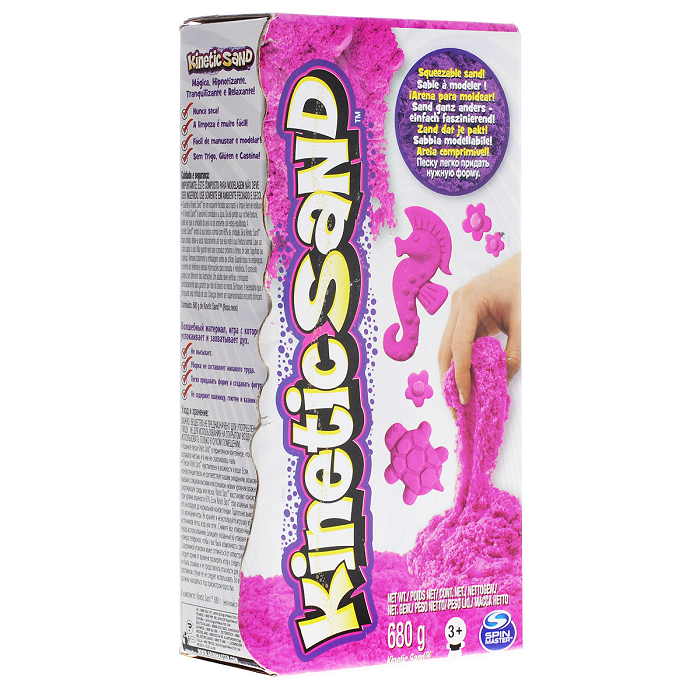 Kinetic Sand похож на мокрый пляжный песок ,но в то же время он мягкий и пушистый, и течет сквозь пальцы, оставляя при этом руки  сухими. Kinetic Sand не рассыпается как обычный песок и очень легко собирается даже если попадет на ковер.