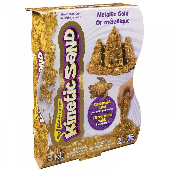 Золотой кинетический песок расфасован в яркие подарочные коробки по 455г. Этот цвет можно сочетать с другими цветами кинетического песка, а в случае если они перемешаются вы получите новые, интересные оттенки.