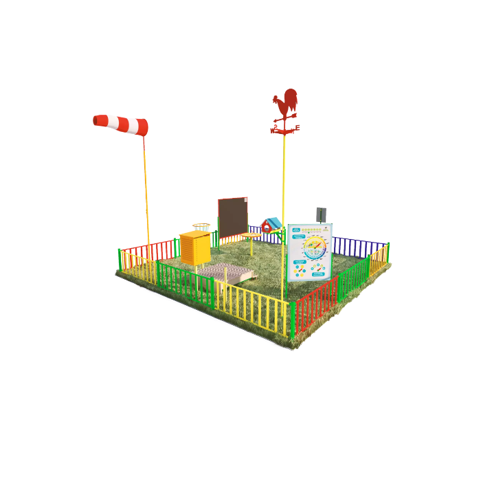 Детская метеоплощадка - созданна специально для детей дошкольного и младшего школьного возраста. На ней расположены приборы, аналогичные тем, что используют профессиональные метеослужбы. На ней ребятишки смогут на протяжении всего года отслеживать погоду, измеряя давление, температуру и влажность воздуха, уровень осадков. Гарантия на оборудование – один год.  Цвета отдельных элементов метеоплощадки могут отличаться от представленных на фото.