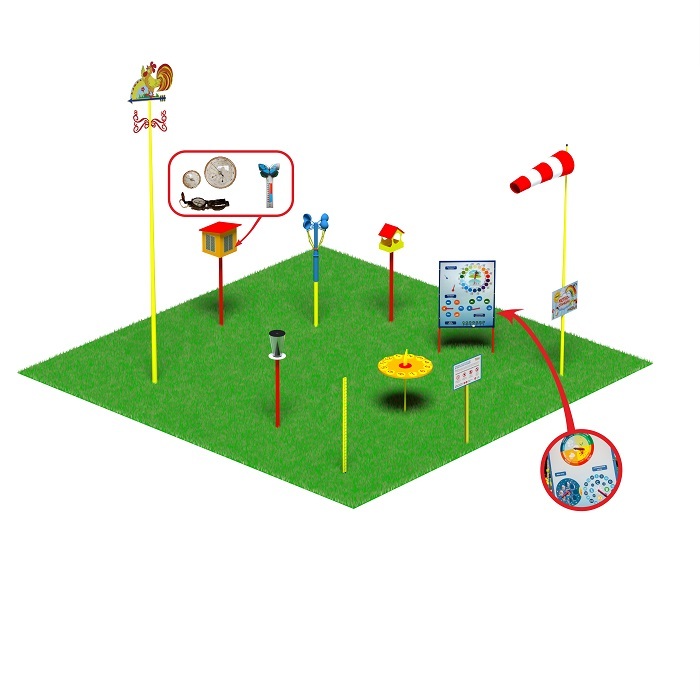 С помощью настоящей метеорологической станции малыши примеряют на себя роль юных синоптиков и проводут свои первые исследования. Дети в игровой форме смогут изучить основные природные явления, узнают, что такое погода, как она влияет на жизнь планеты Земля, животных, растений, человека, на практике знакомятся со всеми погодными проявлениями. Метеоплощадка воспитывает в детях любовь к окружающей среде и умение о ней заботиться! Развивает аналитическое мышление, логику, наблюдательность. Позволяет разнообразить образовательный процесс, сделать его более оригинальным и запоминающимся!
