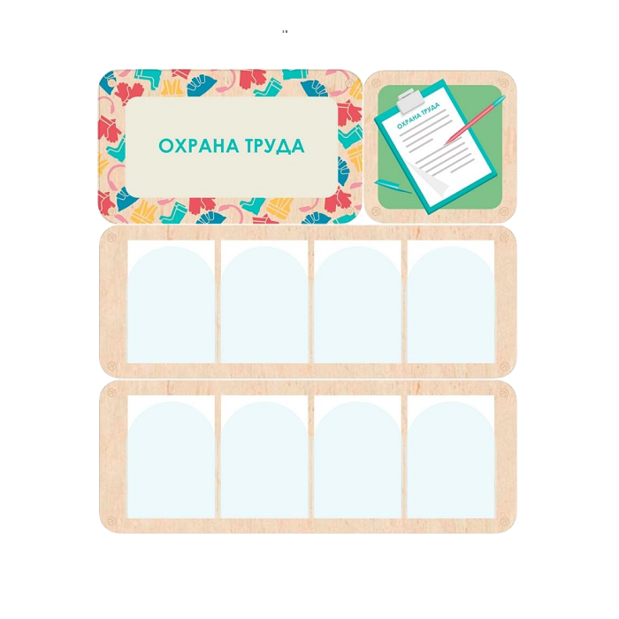 Стенд информации для детского сада, который рассказывает детям и родителям важные сведения об охране труда в учебном заведении. В акриловых карманах можно разместить документацию, регламенты, правила и многое другое. Яркий заголовок акцентирует внимание посетителей на этой информации.