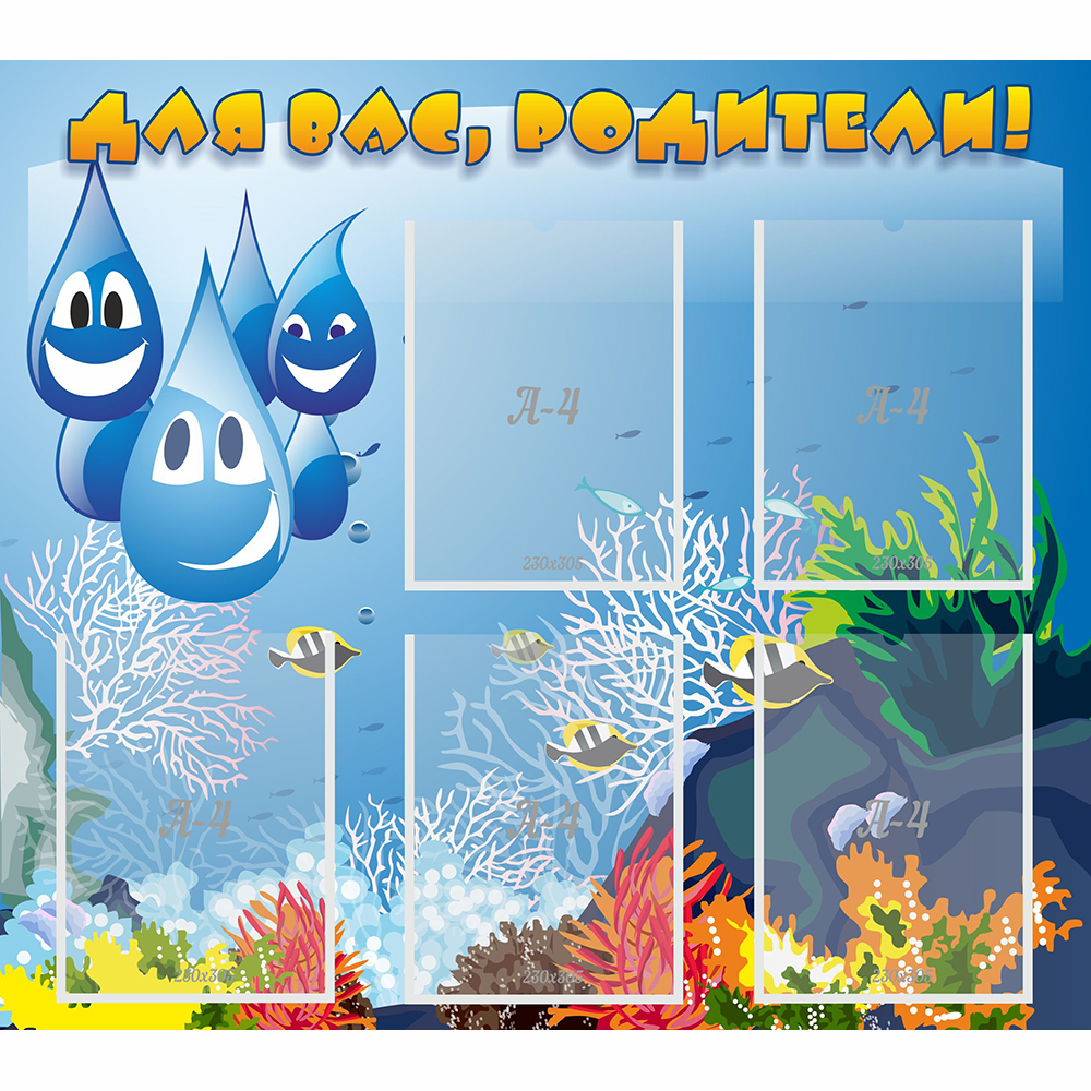 Стенд для родителей — это важная часть для любого детского сада. Потому что постоянно появляется какая-то актуальная информация для родителей, которую важно донести до них, и стенд в этом идеально поможет. Если разместить его на видном месте, то нужная информация всегда будет доходить до своего адресата. Стоит заметить, что уникальный и красивый дизайн привлекает внимание, как взрослых, так и детей. Данный стенд ламинирован, имеет несколько кармашков для информации, в общем практичный и универсальный по своему размеру и цветовому решению, станет незаменимым помощником для вашего детского сада!