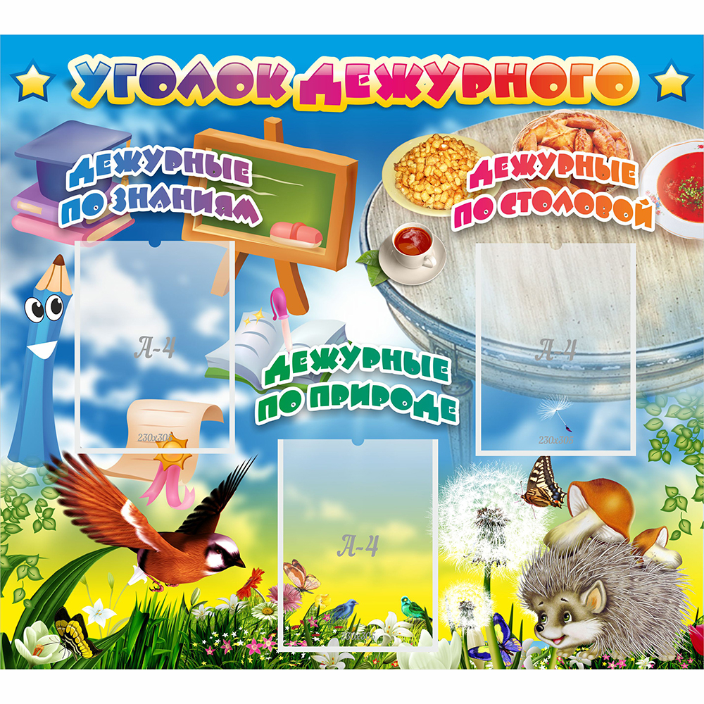 Стенд "Уголок дежурного" с 3 карманами.