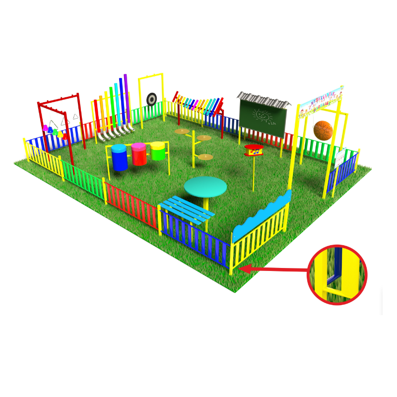 Комплекс предназначен для установки на территории детского сада, прост в использовании и подходит для занятий круглый год.