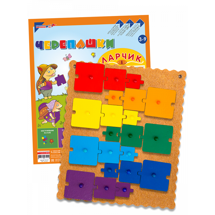 «Черепашки Ларчик» – популярная игра из серии «Эталонные конструкторы». Из деталей игры, имеющих 3 признака (размер, цвет, направление), можно сконструировать целый мир самых разнообразных фигурок, поиграть в логические игры, составить мнемосхему для запоминания стихотворения или сказочной истории. Забавные персонажи и инструкция со сказочным сюжетом и развивающими заданиями помогут организовать увлекательную игру для детей.
