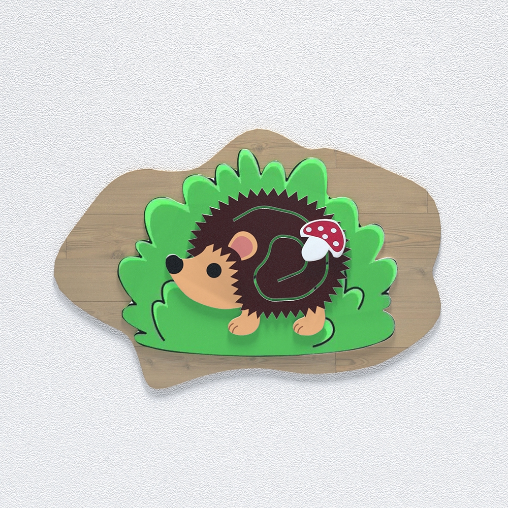 Бизиборд «Ежик» – дидактическое приспособление с игровым уклоном для детей от 1 года. Может быть как объёмным (куб, домик), так и более компактным - в виде плоской настенной панели, которая замечательно экономит игровое пространство, не уменьшая при этом его ценности. Бизиборд «Ёжик» - одна из таких моделей, которая крепится к стене. Основа имеет форму кустика, на фоне которого прикреплён ёжик с грибочком на иголках. Поверхность игрушки отполирована специальным образом по особо технологии и покрыта несколькими слоями (грунт, лак, краска) экологически безопасных материалов.