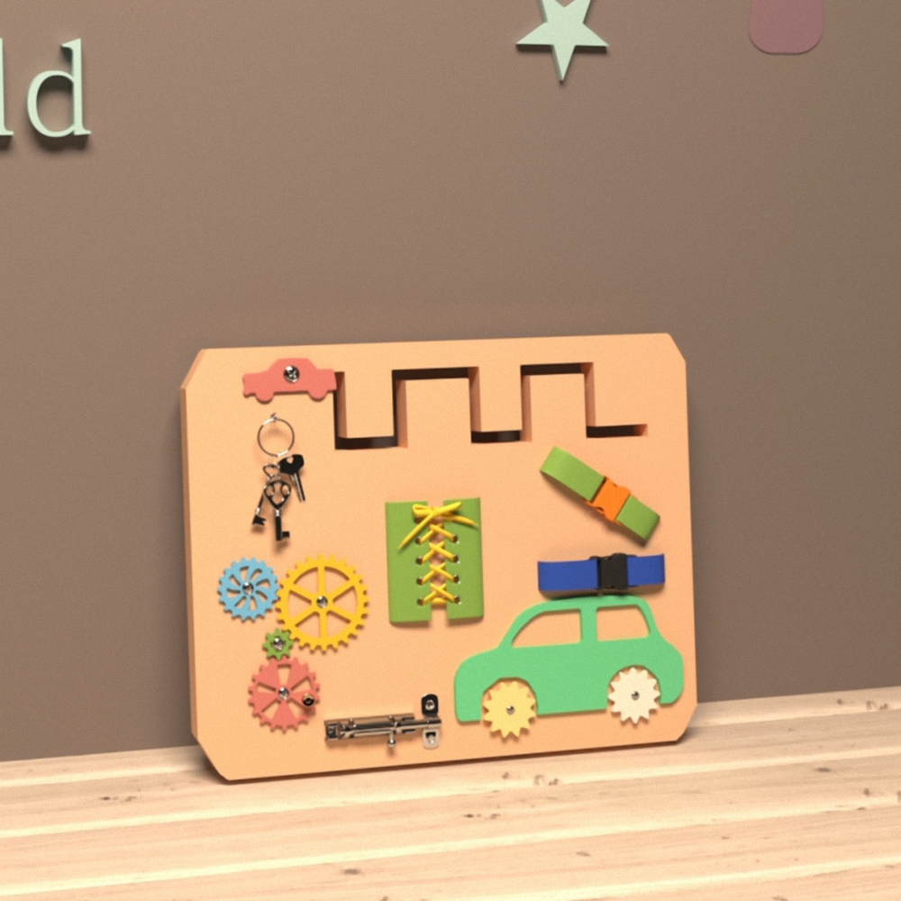 Деревянный бизиборд оптимального размера идеально впишется в любую детскую комнату. Сочетание цветов будет благоприятно влиять на психоэмоциональный фон детей. Благодаря производителю доска безопасна, не имеет острых углов и не оставляет заусенцы на коже малыша. Играть в бизиборд можно как вместе с ребёнком, так и наблюдая за игрой малыша.