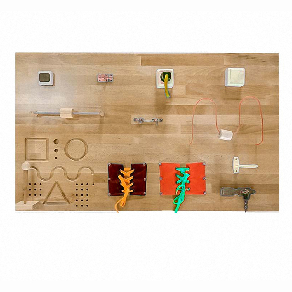 Казалось бы самая простая модель бизиборда, включает в себя самые необходимые элементы, которые влияют с положительной стороны на развитие ребенка. Данный бизиборд выполнен из безопасных и прочных материалов - березы, что позволяет пользоваться игрой с раннего возраста. Каждый элемент развивающей доски крепко скреплены между собой, надежно фиксируются в «рабочем» состоянии.