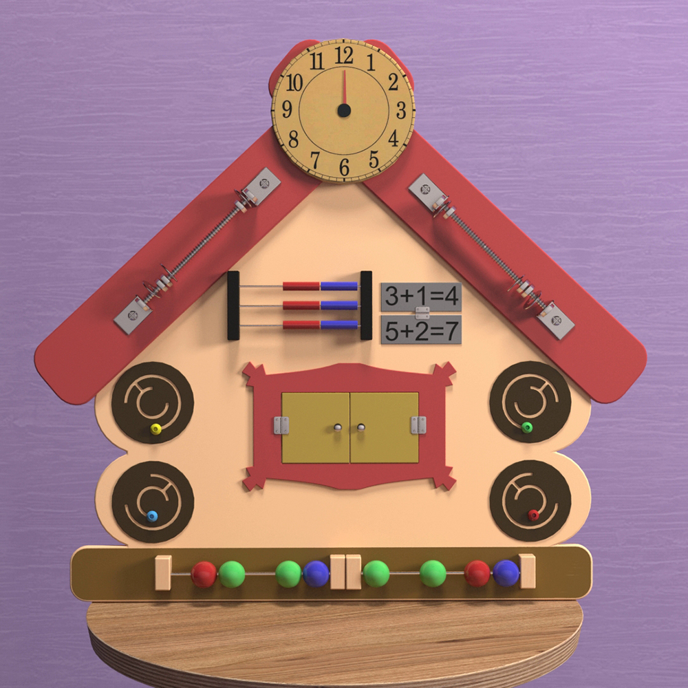 Панель с цифрами познакомит ребёнка с числами, а при помощи счёт можно научить его сложению и вычитанию. Передвигая элементы по ползунку и тактильным лабиринтам, у малыша развивается мелкая моторика пальцев. При помощи циферблата можно объяснить ребёнку, для чего нужны часы и научить определять время.
