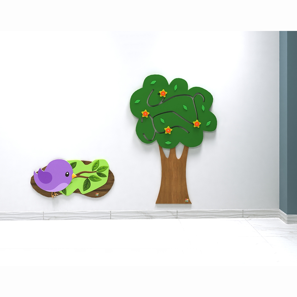 Бизиборд «Вишня» - дидактическое приспособление с игровым уклоном для детей от 1 года. Может быть как объёмным (куб, домик), так и более компактным - в виде плоской настенной панели, которая замечательно экономит игровое пространство, не уменьшая при этом его ценности. Бизиборд «Вишня» - одна из таких моделей, которая крепится к стене. Основа выполнена в форме вишнёвого дерева, украшена фигурками цветочков и листиков.