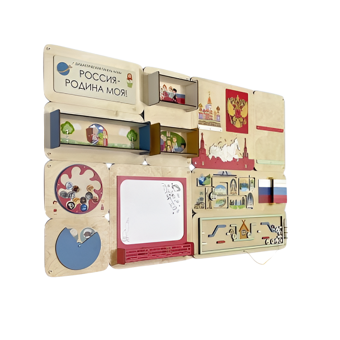 Главная Каталог Подготовительная группа и детский сад Сенсомоторное развитие Сенсорные панели для детей Дидактическая настенная панель «Россия – Родина моя»