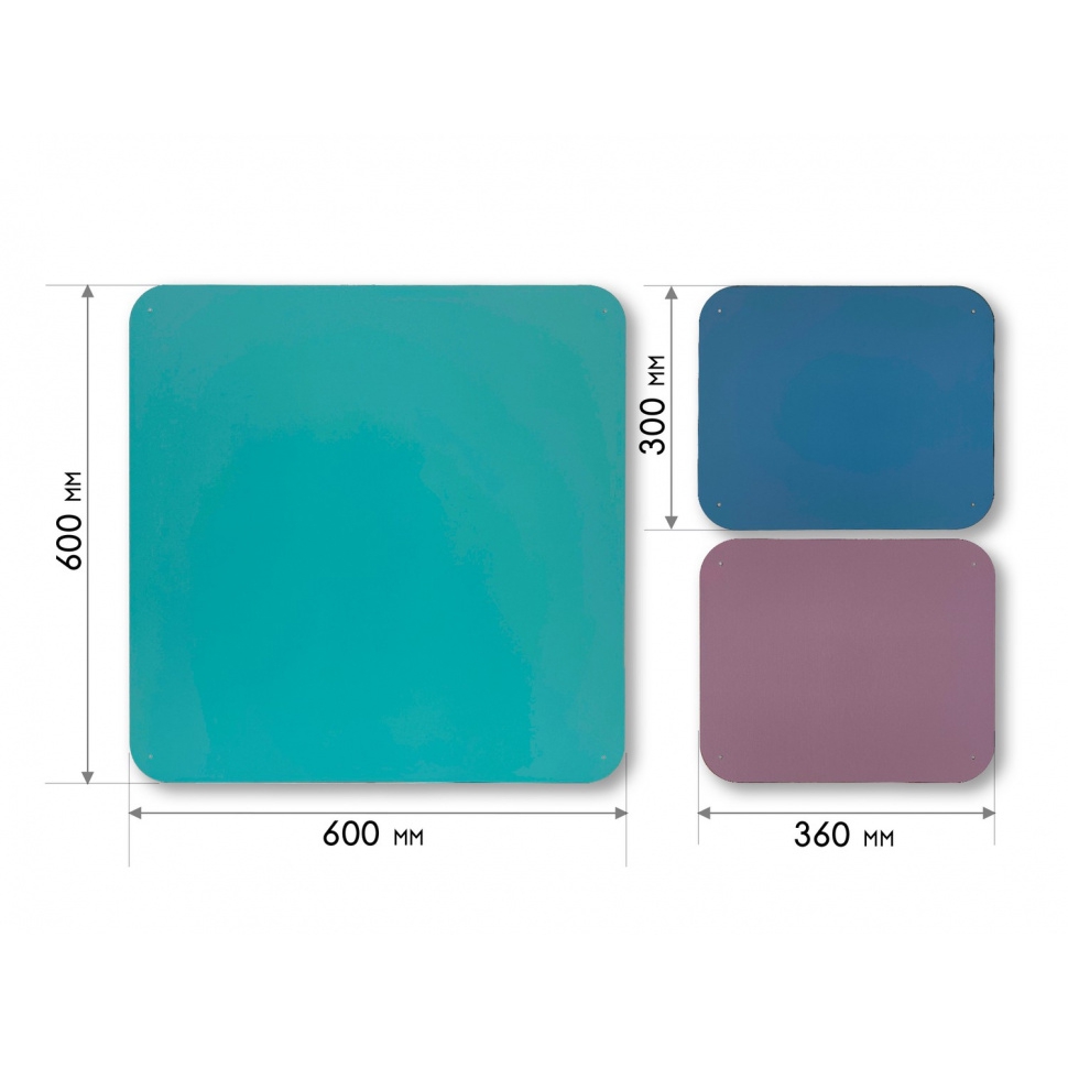 Дополнительные модули бывают однотонные и с тематическими иллюстрациями, подходящими под тематику дидактических панелей. Разнообразие размеров способствует декорированию стен различной конфигурации и масштабов. Параметры варьируются от совсем маленьких модулей 300х300 мм до крупных размеров 600х600 мм.