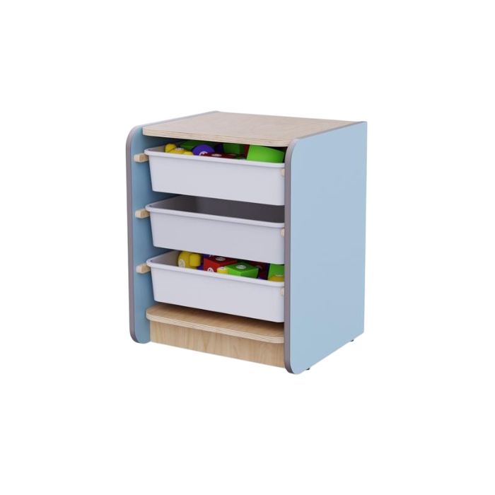 Одинарный модуль для хранения игрушек создан для организации пространства в игровой комнате детского сада. Укомплектован 3 пластиковыми ящиками, полностью вынимающимися из полозьев, что помогает поддерживать порядок и чистоту в ДОУ.
